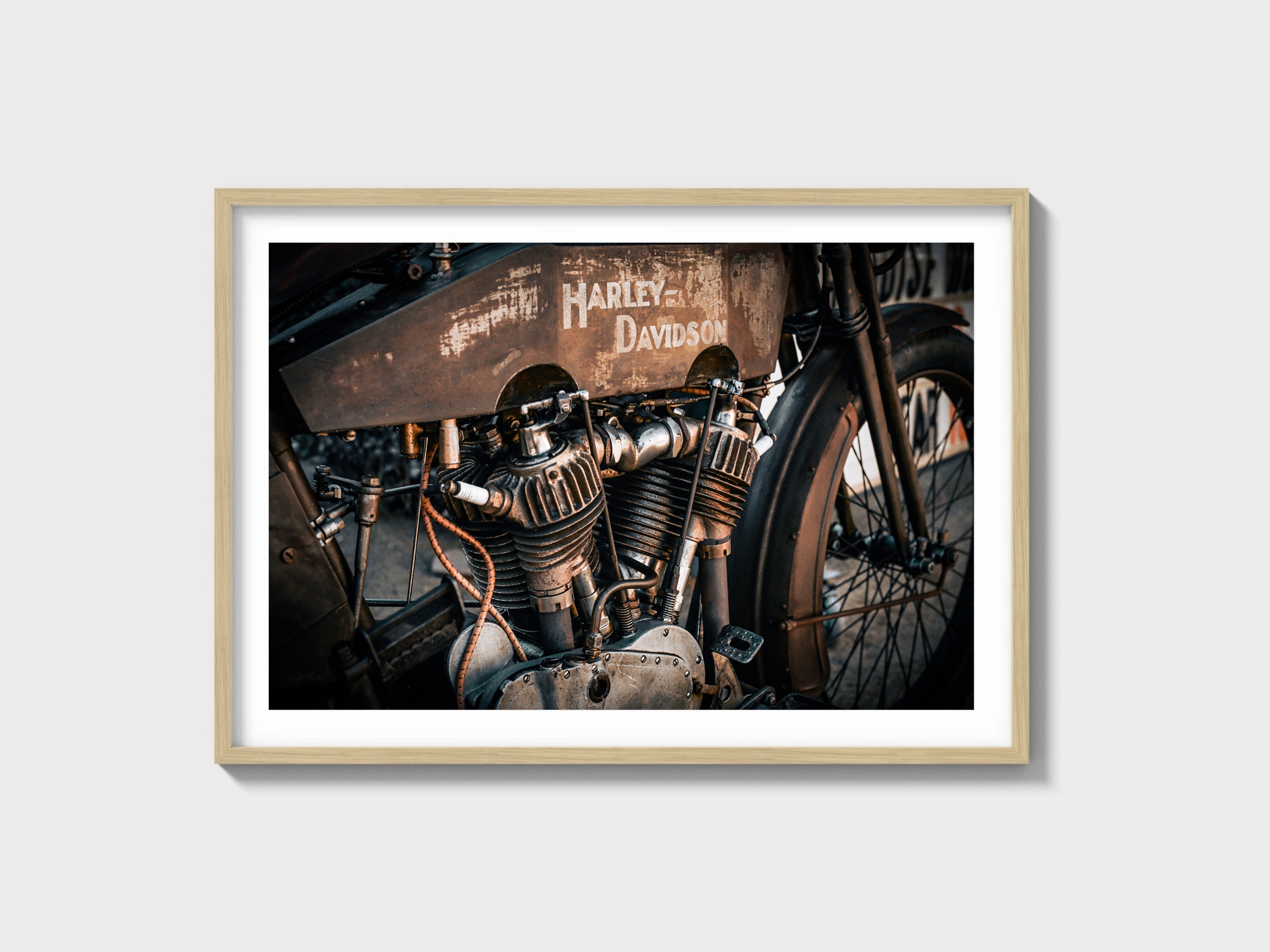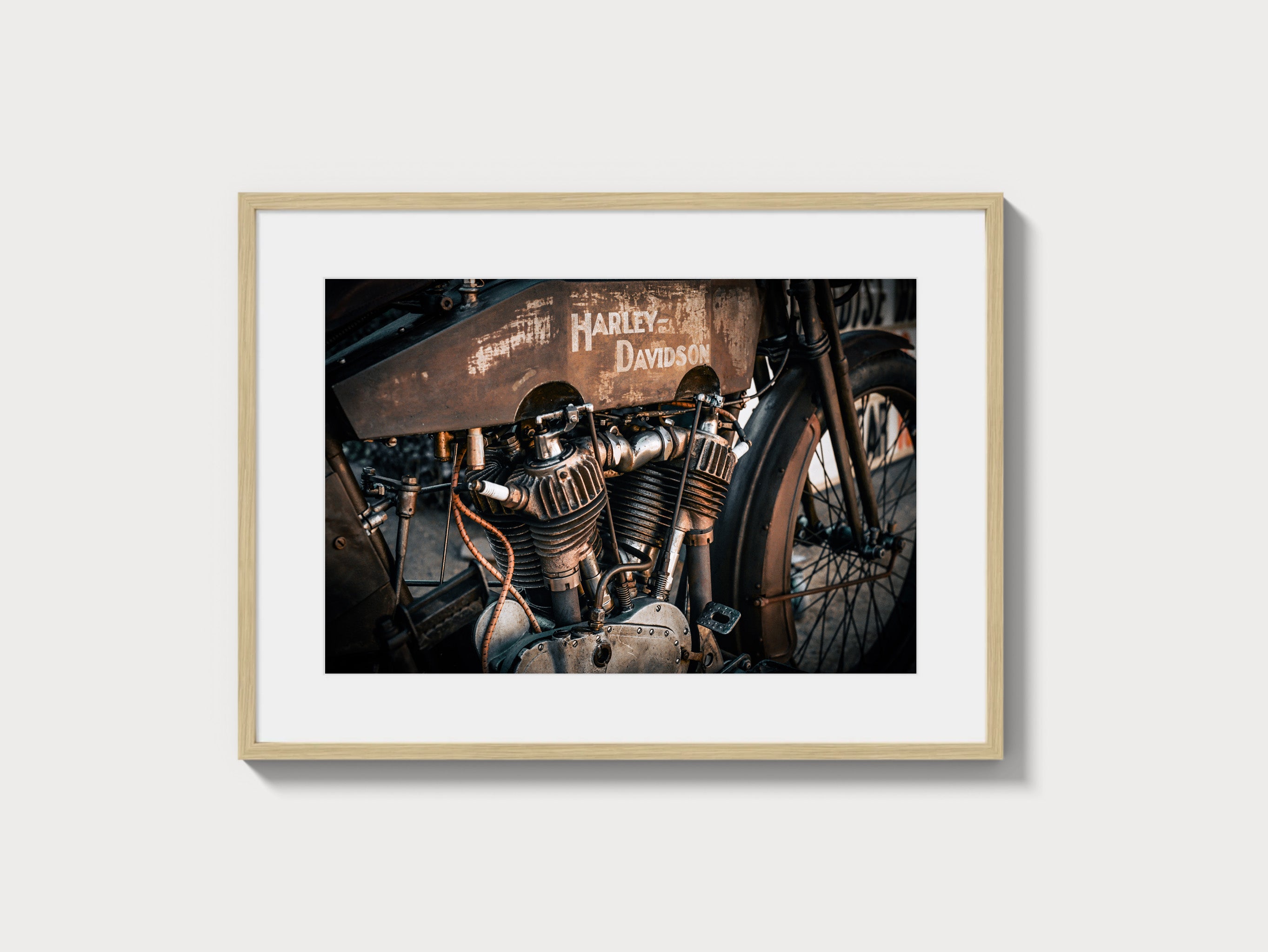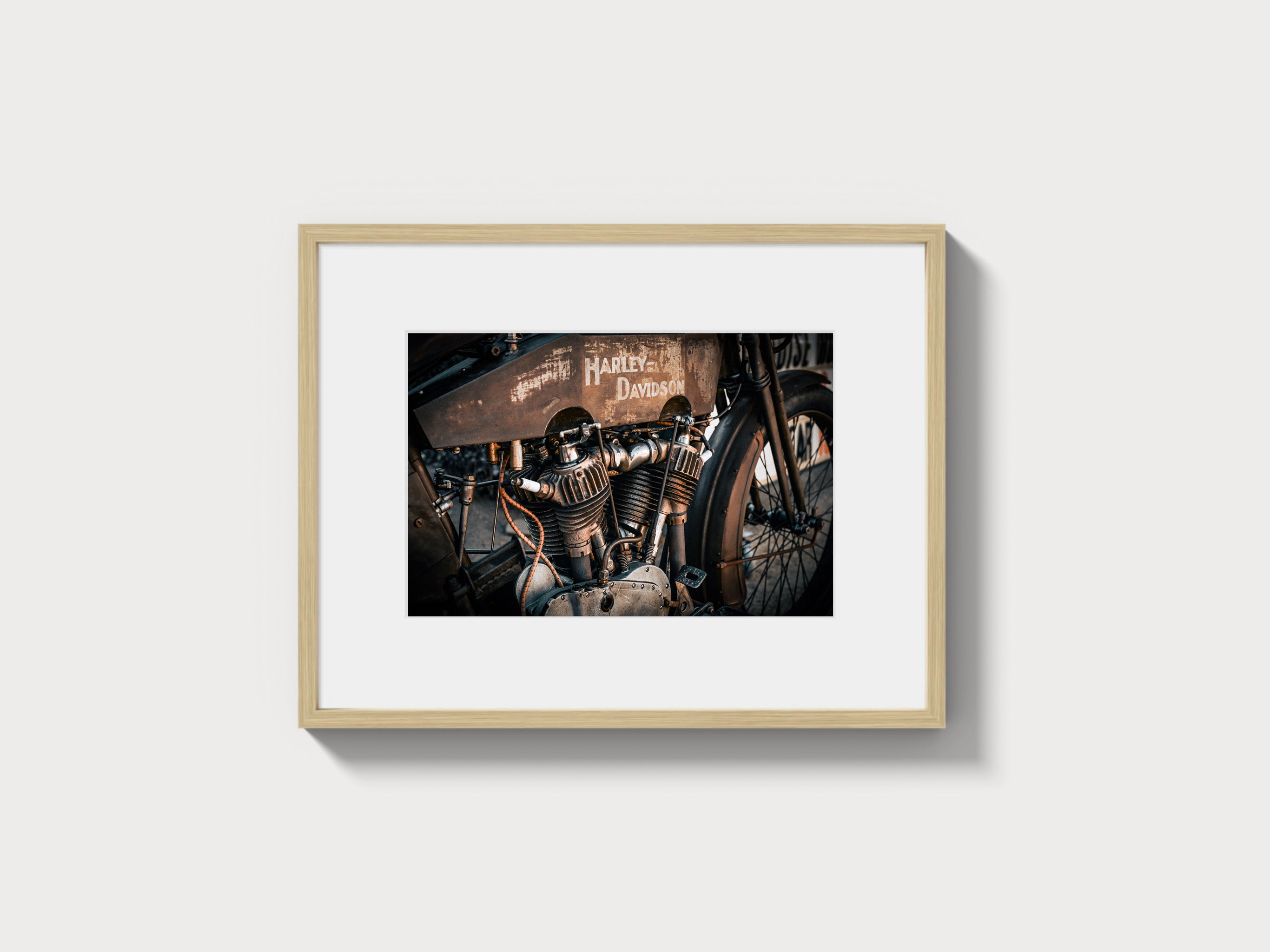 Our Harley Davidson wall art is printed on 300gsm archival fine art paper and framed by hand in Los Angeles. Gallery-quality automotive photography featuring Harley Davidson motorcycles. Archival inks, hardwood frames, timeless design, ready-to-hang framed Harley Davidson photography for collectors and enthusiasts.